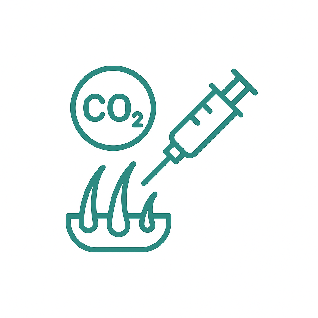 Oxigenación profunda con CO₂ que activa la circulación y estimula el crecimiento capilar.