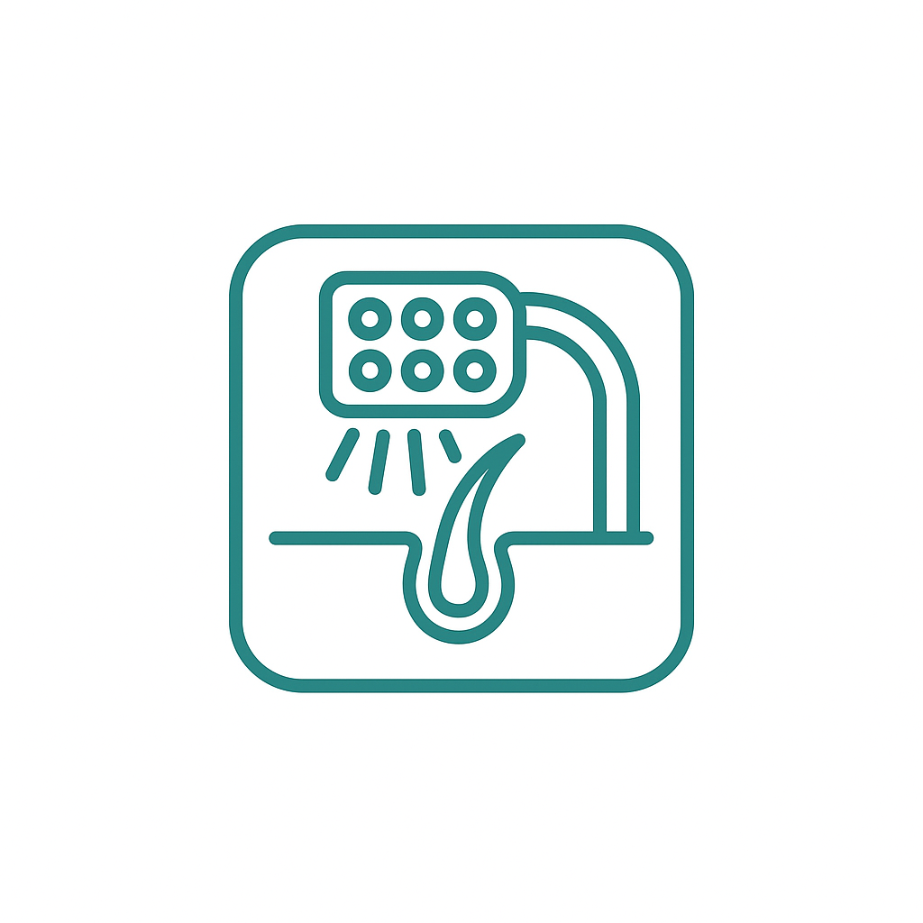 Luz de baja frecuencia que fortalece el folículo y frena la caída de manera indolora.